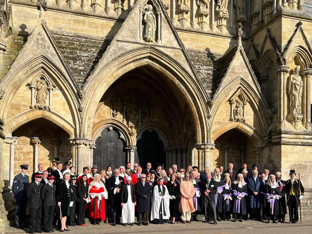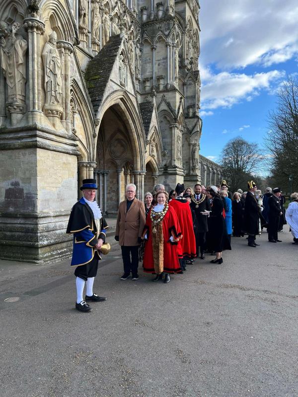 Along with Mayors, Judges, Dr Olivia Chapple OBE High Sheriff of Wiltshire and Dame Sarah Troughton DCVO, HM Lord Lieutenant of Wiltshire they processed from Salisbury Museum to the west door of the cathedral and then took part in a very moving service of thanksgiving.