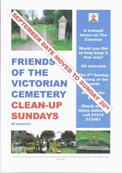 The monthly "clean-up" day for the old Victorian cemetery on the Common usually takes place on the 2nd Sunday of the month. For this month only, please be aware that the date has been changed to 20th September, starting at 10 am.