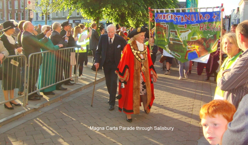 Our Town Mayor, Councillor Margaret Rose, was honoured to be asked to lead Marlborough in a parade in Salisbury, home of one of the original Magna Carta documents, at an event on Monday 15th June to celebrate the 800th anniversary of its sealing. It was a stunning display featuring 18 larger than life rebel Barons representing Wiltshire's communities. Young people played an enormous part in the pageant with Scouts marching behind an imaginative banner and alongside Marlborough's Baron which had been designed by students at St John's Academy and was magnificent. Cllr. Rose said: "I was very proud to represent Marlborough as their Mayor and be part of this historic event. More in the Mayor's Blog and on Wiltshire