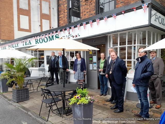Our thanks to Matt Barnes for providing everyone with the first symbolic coach trip to the High Street ,and also to the Polly Tea Rooms for providing refreshments to our first official Coach Friendly visitors - even if they did only travel there from the coach park!