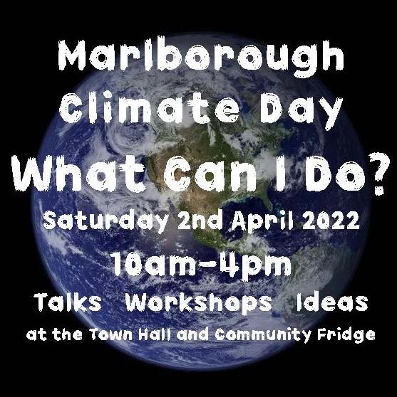 Save the date for the Marlborough Climate Day on Saturday 2 April 2022 from 10am-4pm in the Town Hall and at the Community Fridge.The theme of the day is "What Can I Do?", focussing on ways we as individuals and a local community can live more sustainably. The programme will be full of local organisations and businesses running workshops, demos and sharing ideas and resources for how to combat the climate crisis from home.