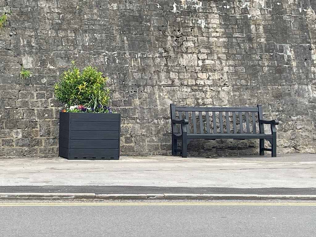 - Repainting street furniture at some locations with black paint, for example bridge railings, bollards, wooden planters and benches