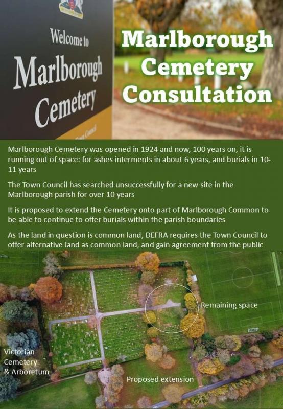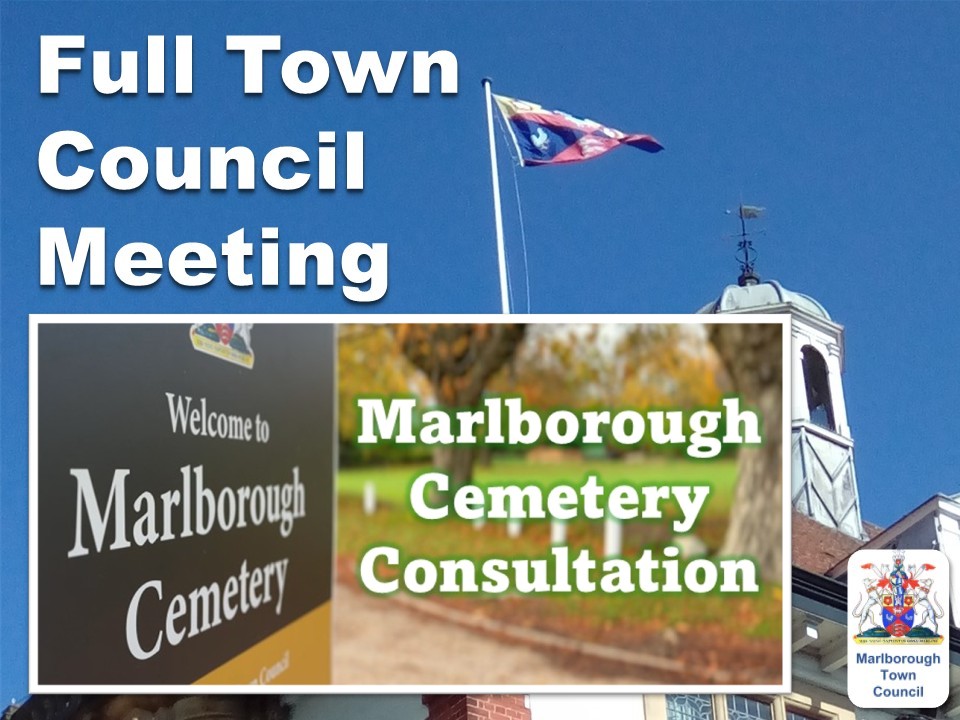 As well as an opportunity to ask the Council questions during public question time, at the start of the meeting there will be a presentation about our proposals to extend Marlborough Cemetery and the implications for this relating to Common land, with another proposal to designate a much larger piece of land to the north east of the town as Common land in compensation. This requires public consultation and we'll explain what, why and how you will be able to vote after showing a short video. Again, there will be an opportunity to ask questions about this.