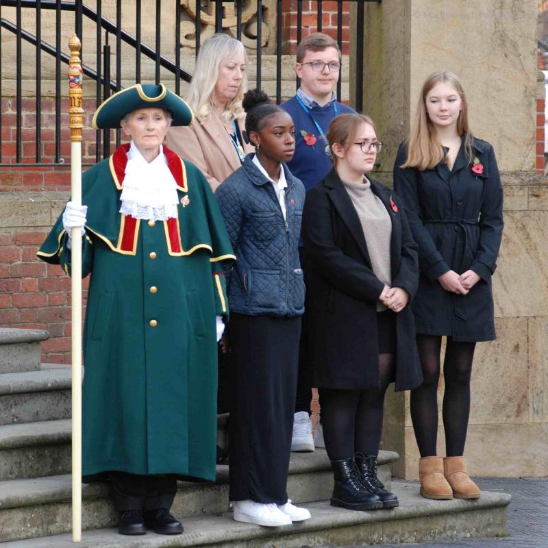 Claire Garrett DL represented Wiltshire Lieutenancy at Marlborough Town Hall to join people of the town to mark the 2-minute silence at 11am.
